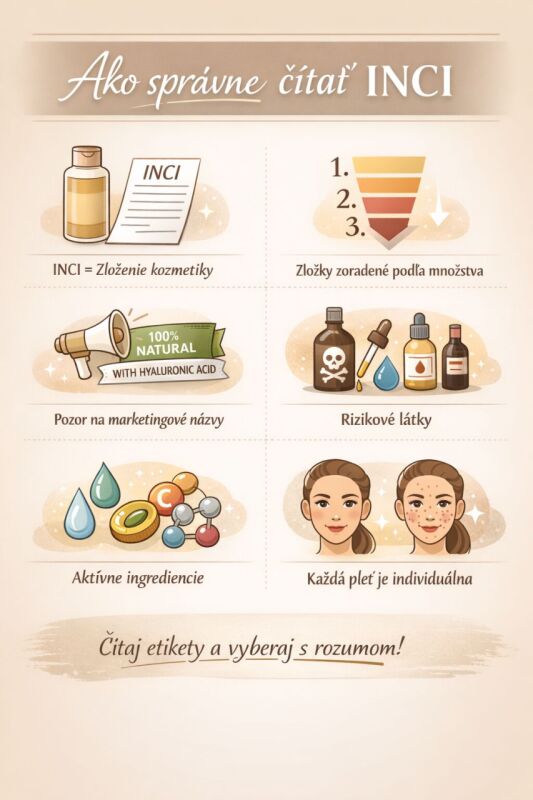Pri výbere kozmetických produktov sa väčšina ľudí riadi značkou, cenou alebo sľubovaným účinkom. Skutočnú kvalitu produktu však prezrádza až jeho zloženie – tzv. INCI (International Nomenclature of Cosmetic Ingredients). Naučiť sa čítať zloženie kozmetiky je dôležité najmä vtedy, ak máte citlivú, problematickú alebo aknóznu pleť.